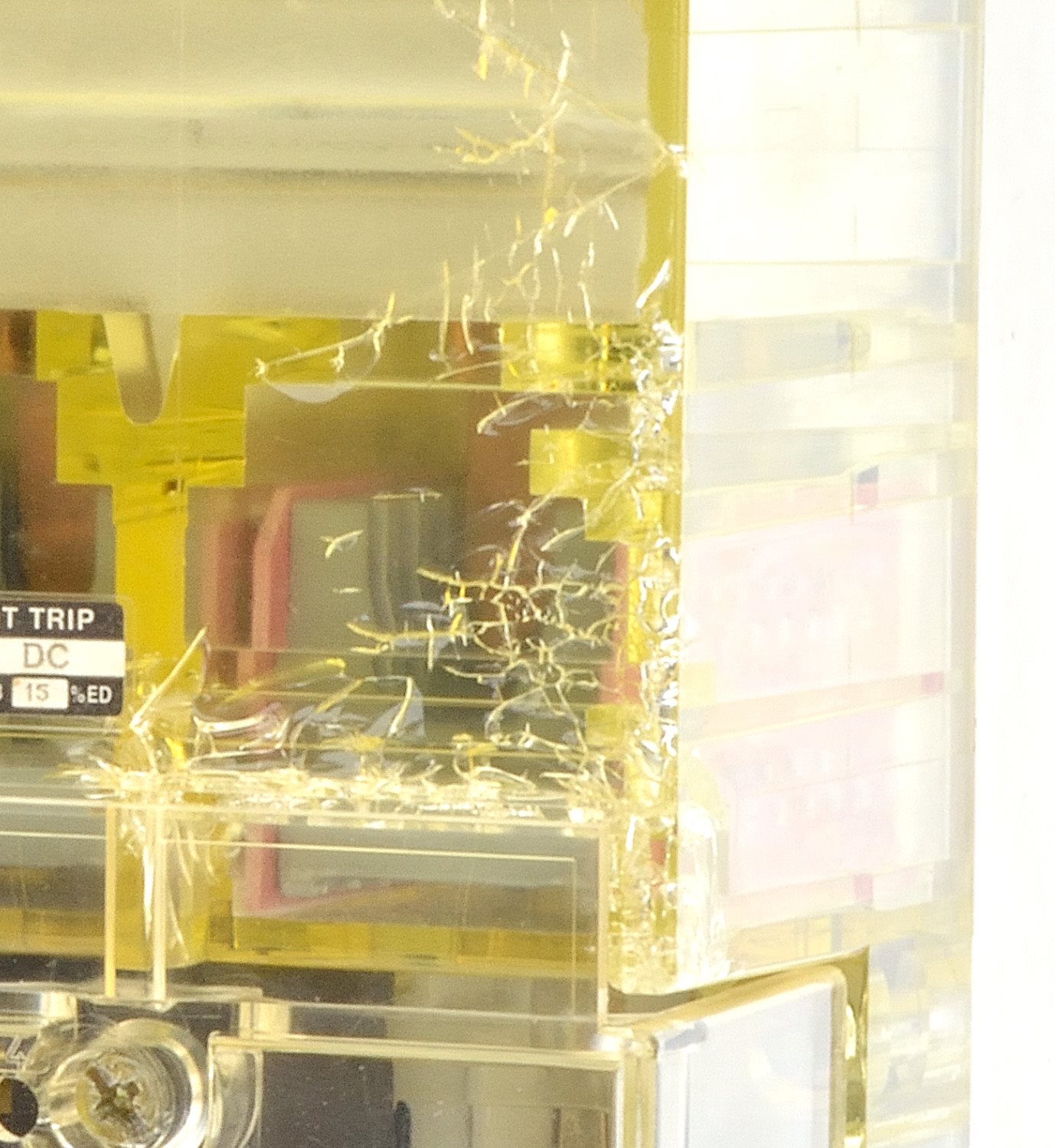 Das Gehäuse hat auf der Vorderseite Haarrisse, der Kunststoff ist jedoch