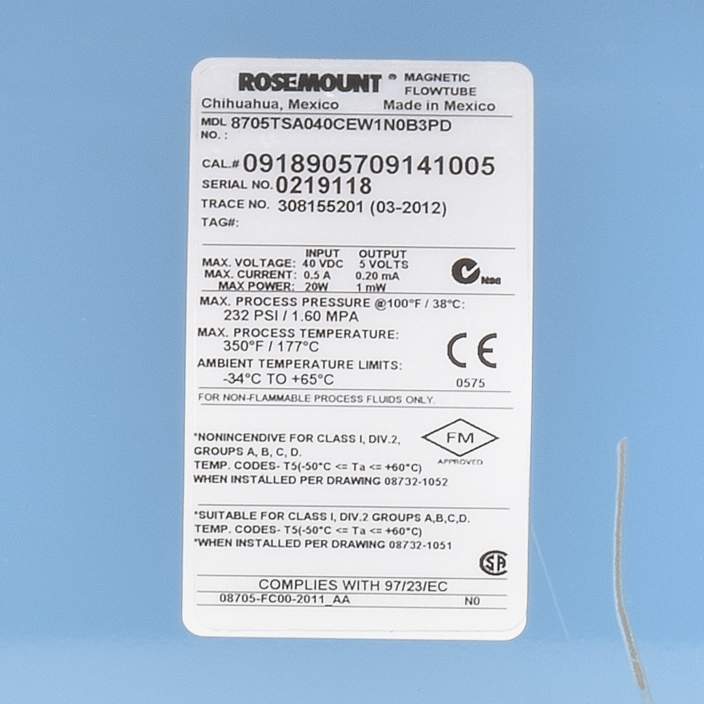 Rosemount 8705TSA040CEW1N0B3PD